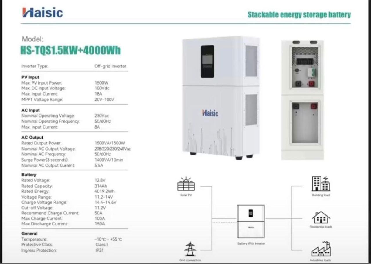 Introducing the Haisic 1.5KVA All-in-One Solar Inverter + 4KWh Lithium Battery